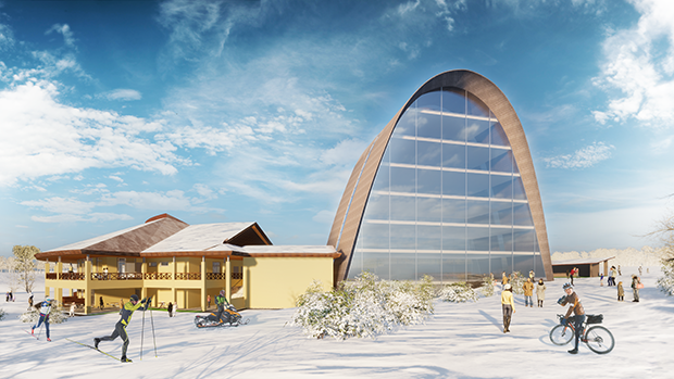 The new Golden Resort hotel building in a wintery landscape. Photo: @Pa-La.