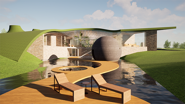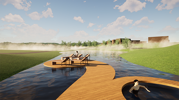 Rendering of the outdoor areas of the new spa at Tahko Golden Resort. Photo: @Pa-La.