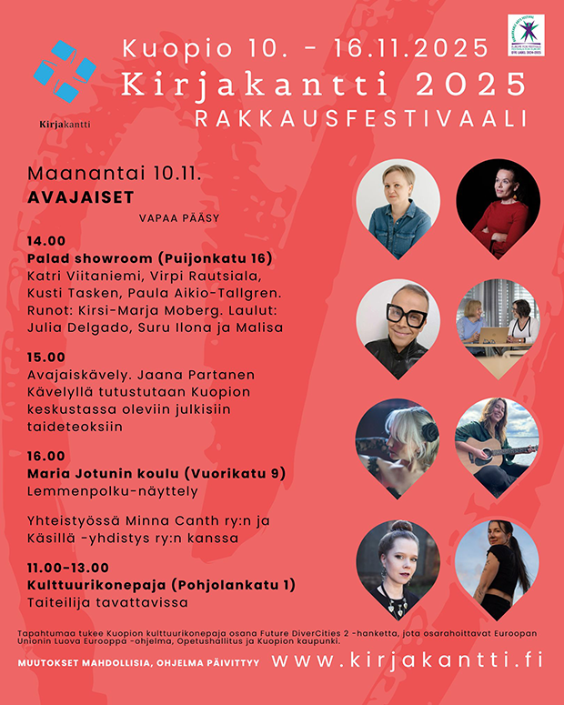 Kirjakantti 2025 Rakkaus-festivaalin aikataulu maanantaina 10.11.2025.